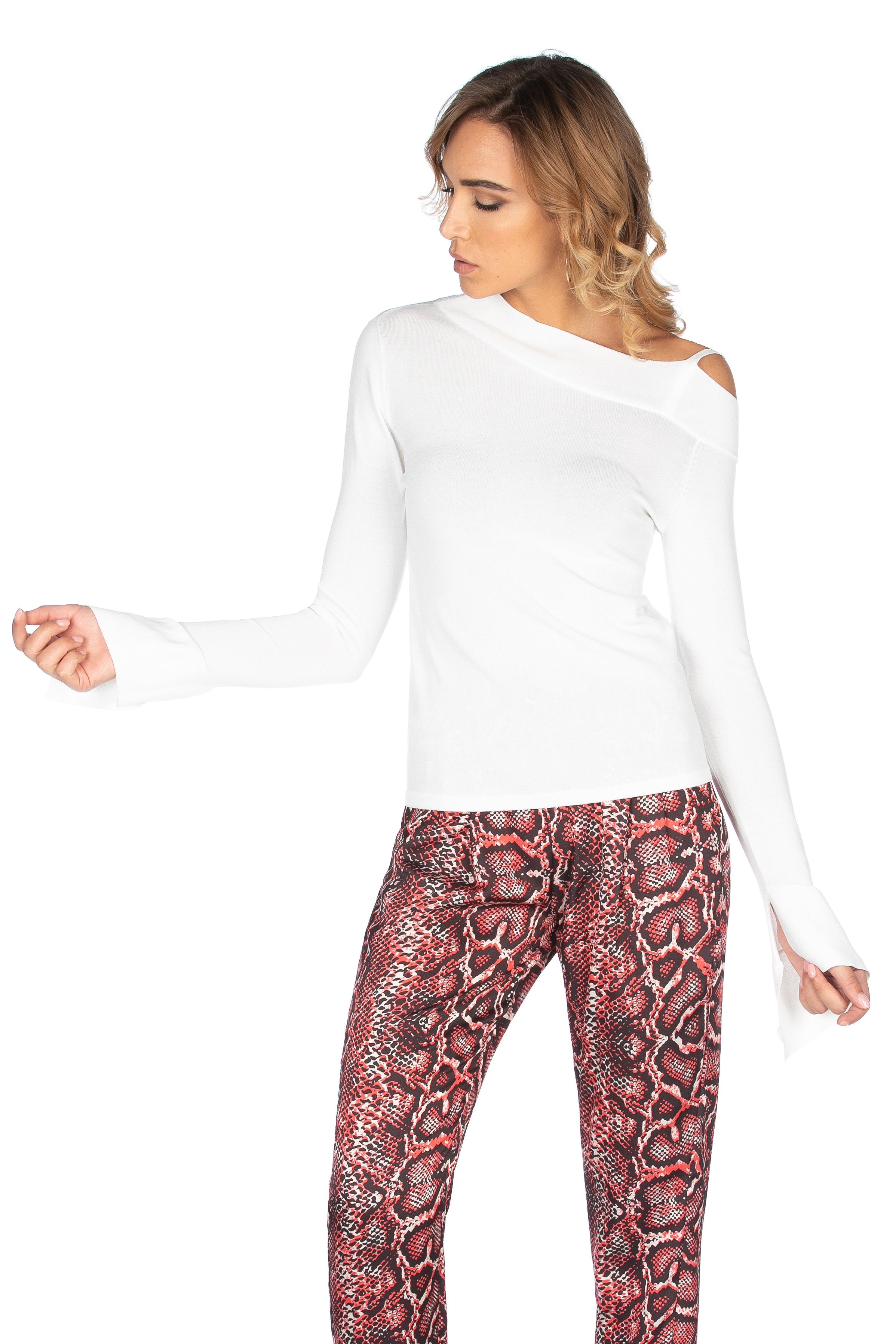 Maglia di filo WHITERS manica lunga scollo barca con fondo manica ampio