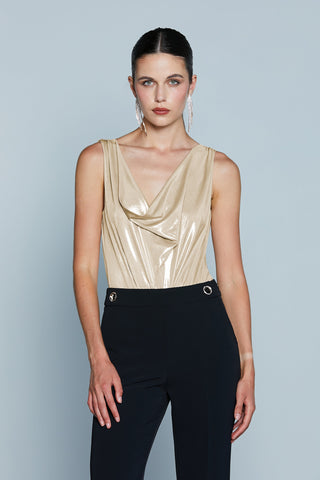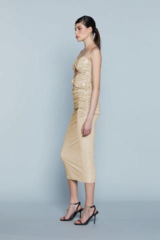 Abito TROPICA Midi Fascia Cut-Out con Arricci più Nodo Spalmato Lurex