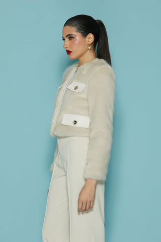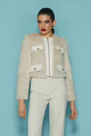 Ecopelliccia AGOSTYN manica lunga con patte ecopelle più bott.gioiello più zip