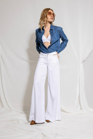 Jeans PATZY_20 V.Medio-Bassa con Tasconi più Patte con Pietre Lav.Bleach Denim
