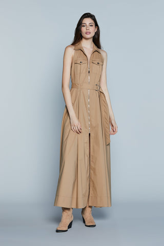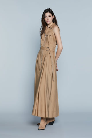 Abito LUNGU Lungo S/M Chemisier con Zip più Tasche più Cintura più Spacco