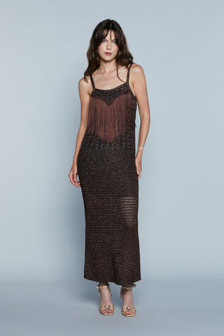 Abito AVILES Lungo S/M con Sottoveste più Frange L.Crochet più Lurex