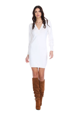 Abito HIFRED corto manica lunga collo alto con dettaglio anelli costina