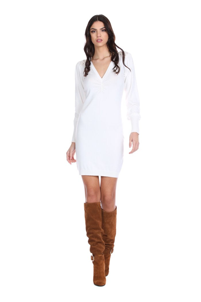 Abito HIKAR corto manica lunga scollo v con arriccio più rouches spalle più applicazione stelle