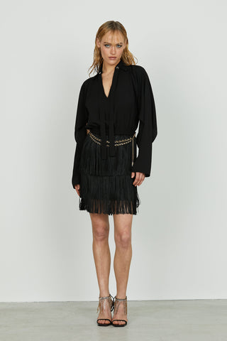 Abito ELGUAG corto scollo a v manica lunga con ap. Più fusciacca più gonna frange più cintura