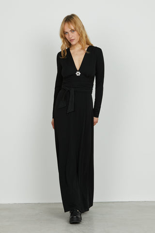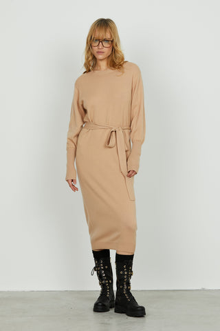 Abito ANAFI corto manica lunga scollo v con tasche più cinturini ecopelle