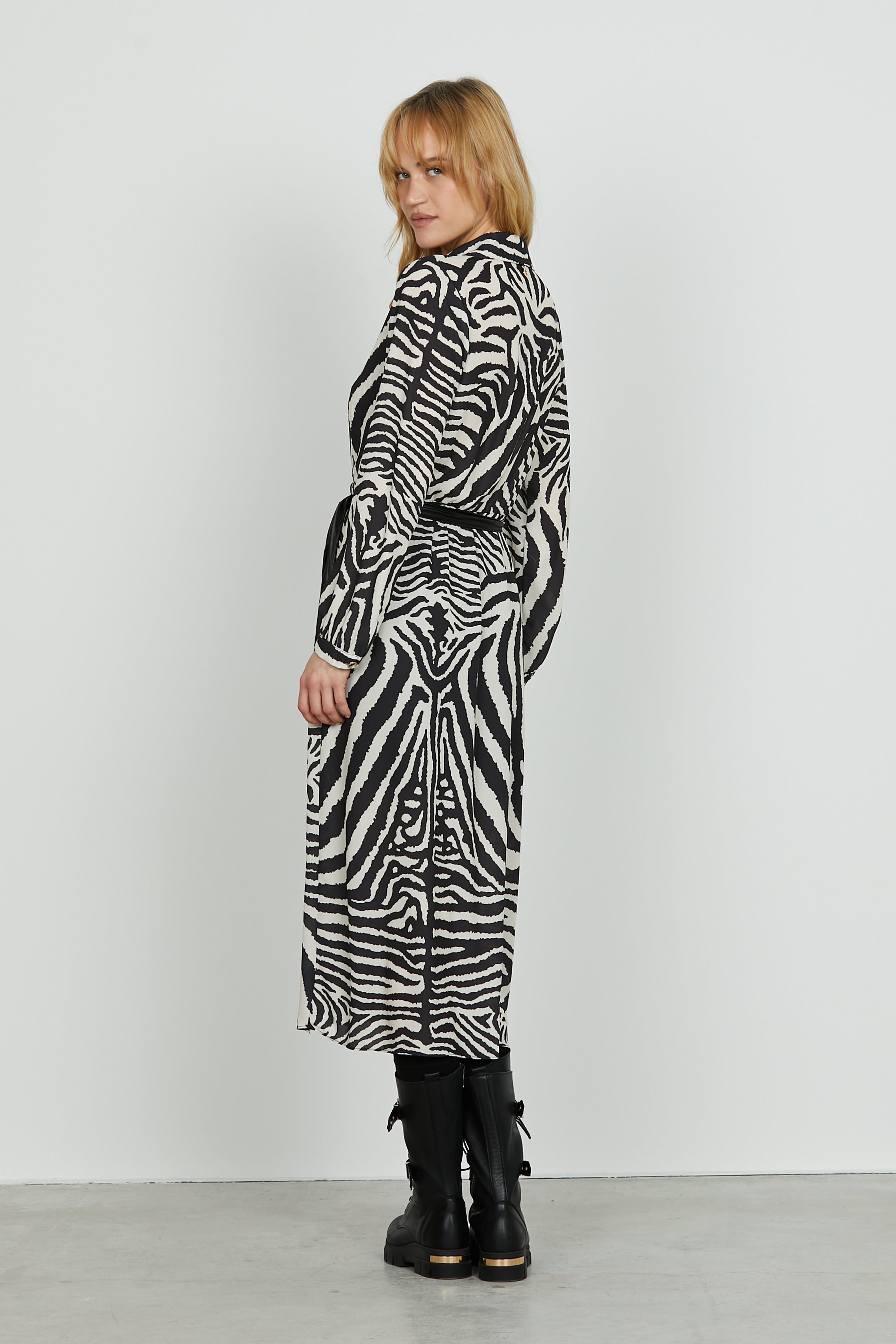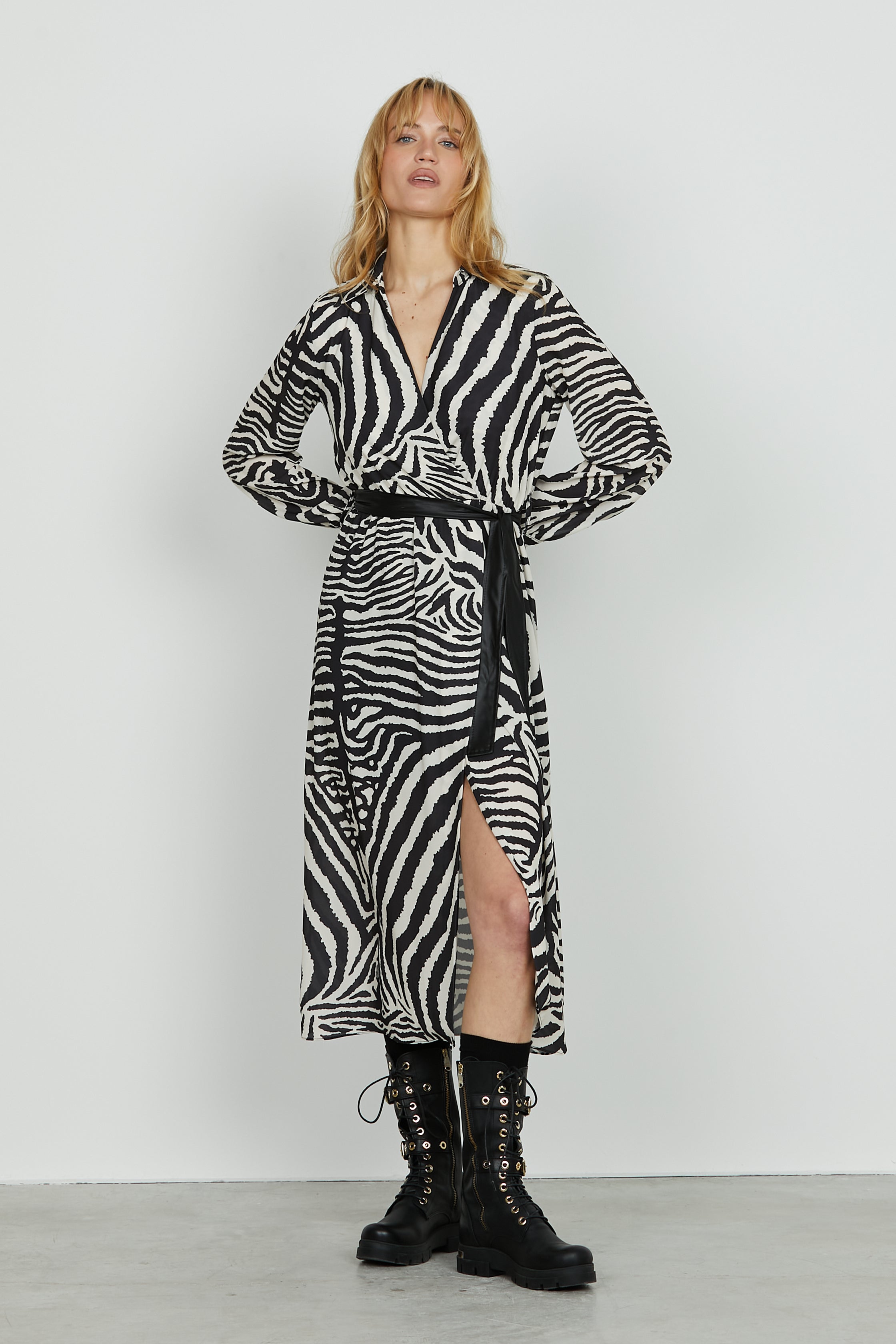 Abito DATUM midi manica lunga sc.incrocio più cintura più gonna portafoglio f.animalier