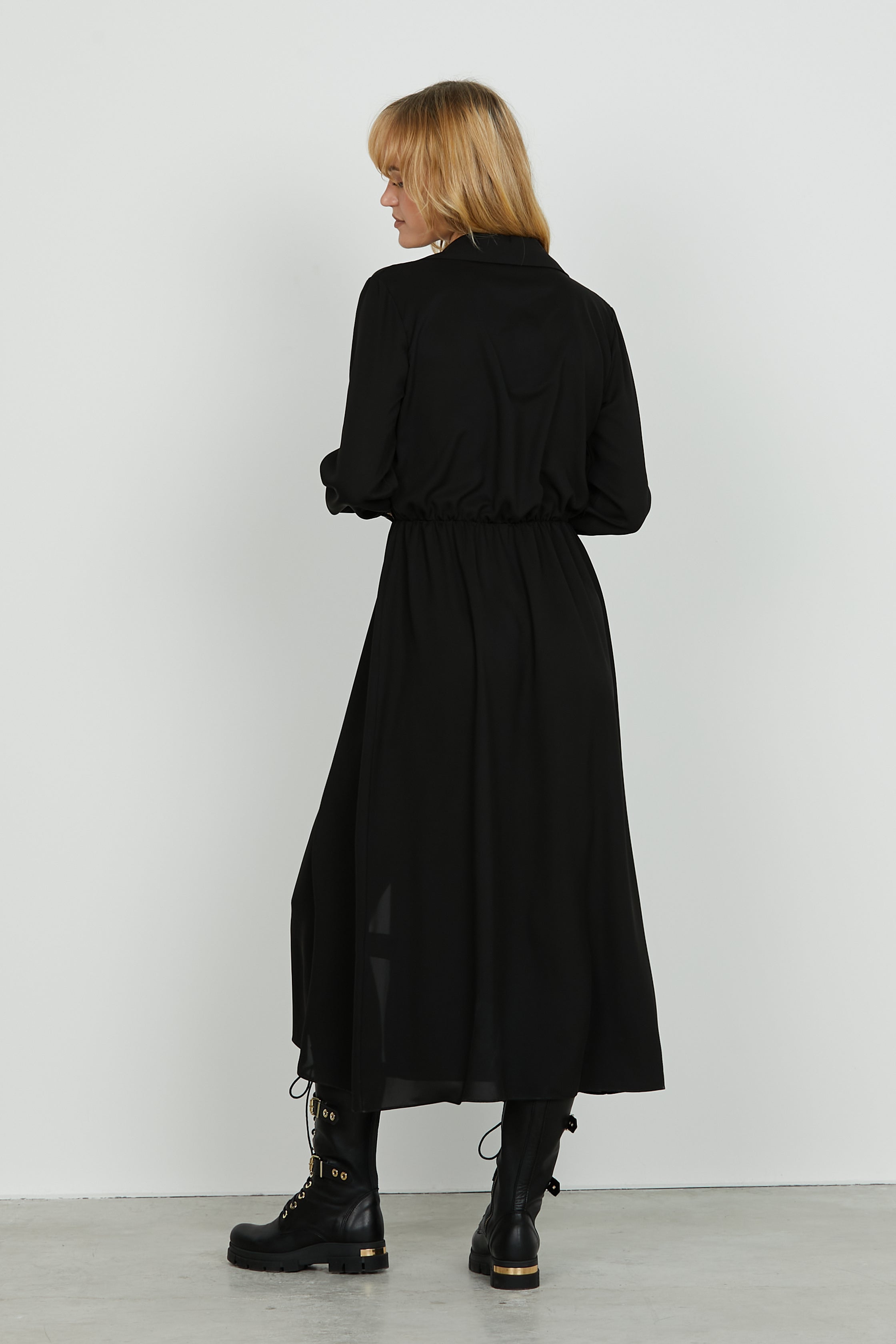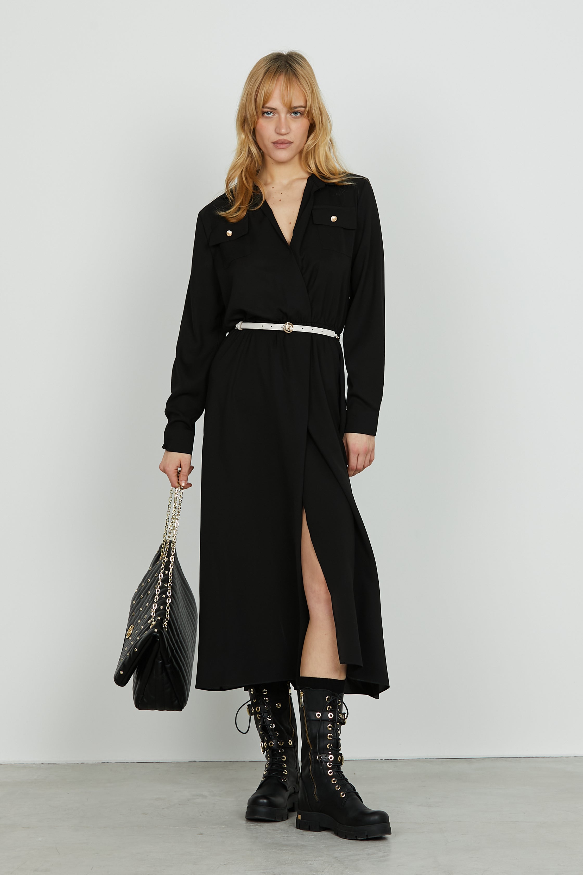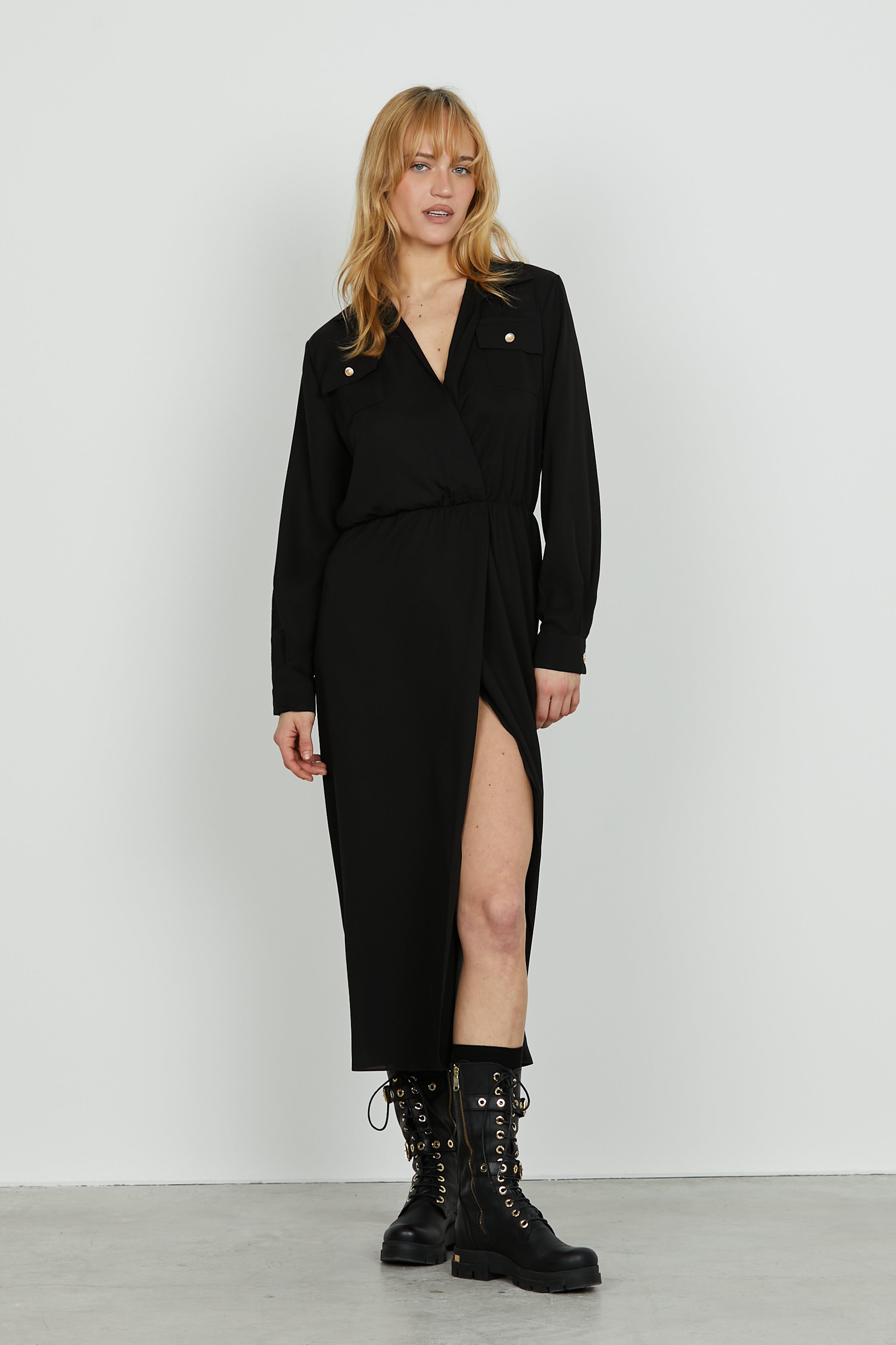 Abito NEGO midi manica lunga sc.incrocio più tasche più elastico più gonna portafoglio