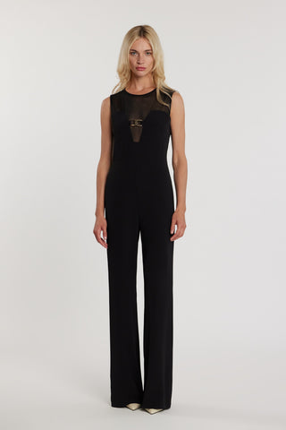 Tuta AUDRAN lunga smanicata scollo a cuore con inserti tulle più passante logo