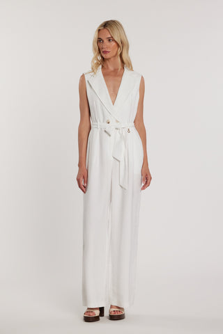 Tuta MORANTE lunga smanicata palazzo effetto giacca doppiopetto con cintura più tasche