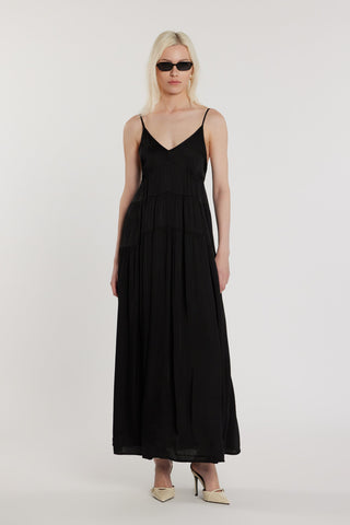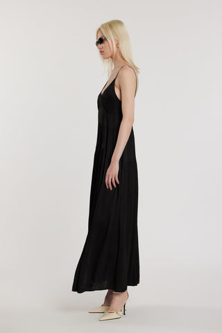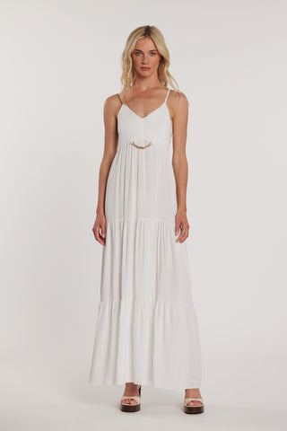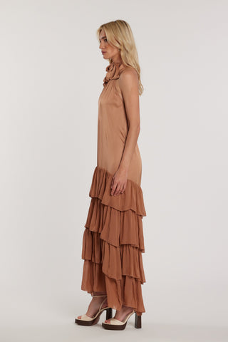 Abito MORELL lungo smanicato scollo americana con apertura sulla schiena più fusciacca più balza