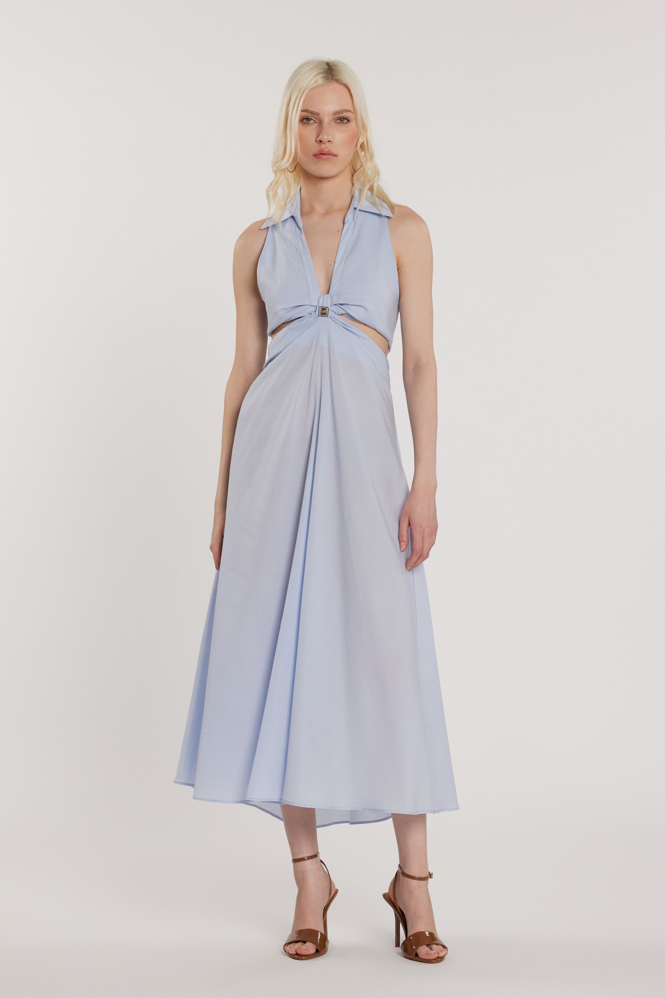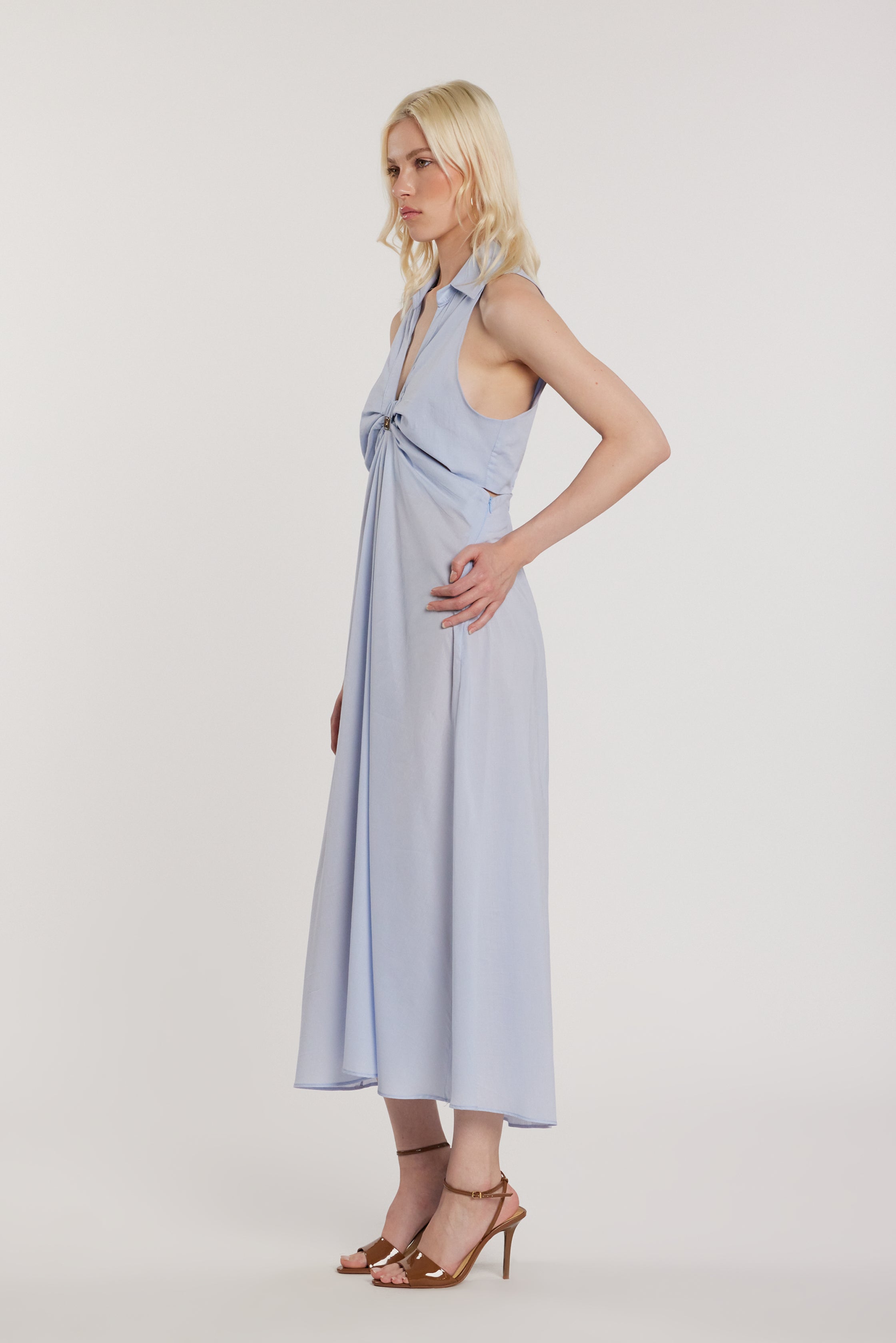 Abito VALLESI midi smanicato con colletto più nodo sul seno con elastico più apertura fianchi