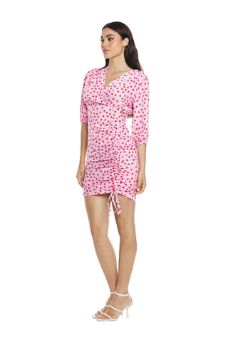 Abito VIAREGGIO corto mezza manica monospalla scollo cuore con arricci fantasia po