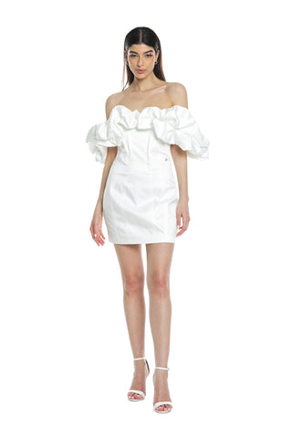 Abito ARCHERNAR corto scollo bardot con manica palloncino più stecche