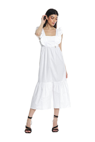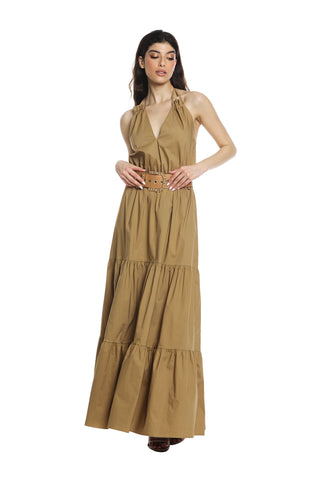 Abito NICOLASH lungo senza manica con lacci collo più elastico vita più balze