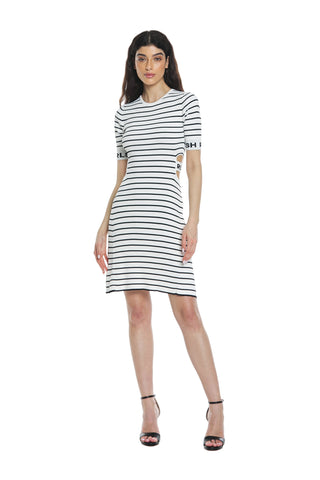 Abito ANGELITE corto mezza manica con apertura fianchi più logo righe costina