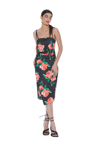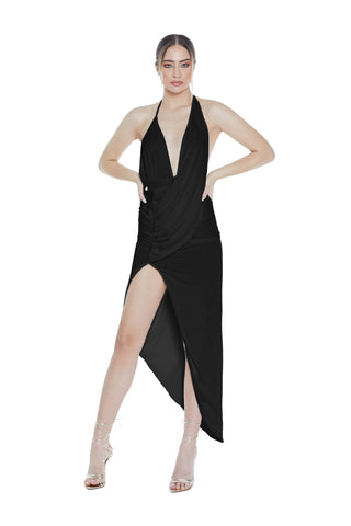 Abito ANSER lungo top scollo profondo con arricci più spacco scollato dietro