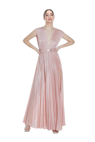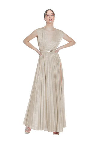 Abito GRAZIK lungo senza manica scollo v prof.con tulle schiena più cint.logo lurex plissé