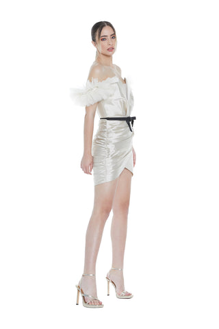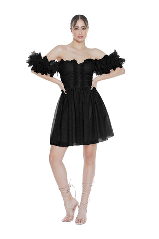 Abito ALTAIS corto mezza manica tulle scollo cuore più cintura più incrocio più arricci