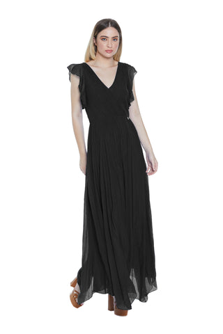 Abito YUKA lungo mezza manica con risvolto scollo incrocio più fusciacca gonna portaf.
