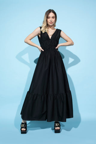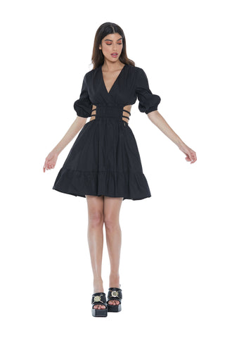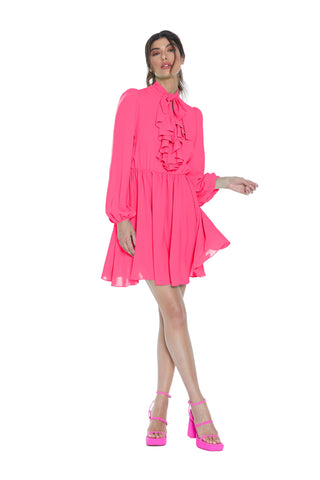 Abito MINEKO corto manica lunga con arricci più apertura fianchi più balza fondo