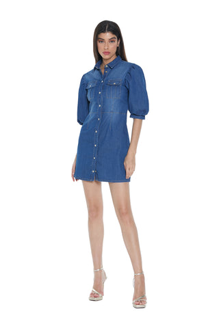 Abito VESTREW corto mezza manica palloncino chemisier con tasche denim
