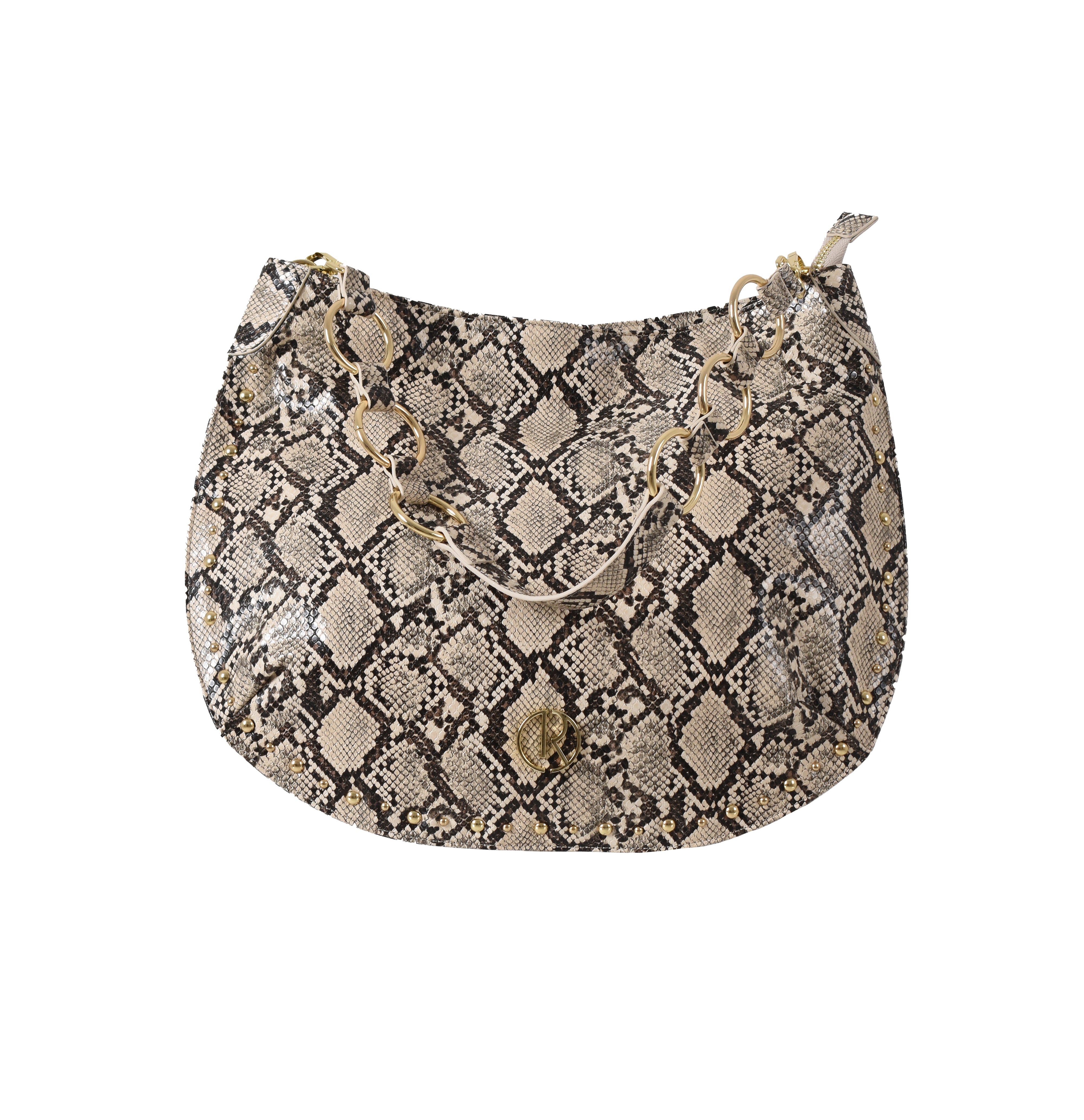 Borsa leggeri mezza luna grande con manico più anelli più borchie f. Pitonata