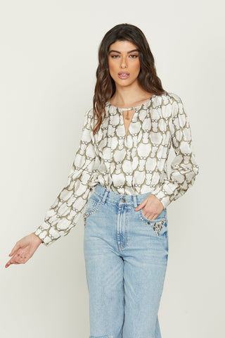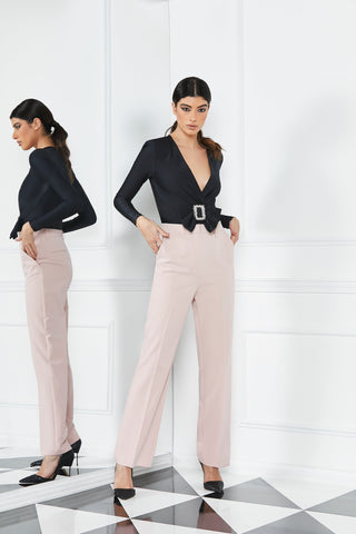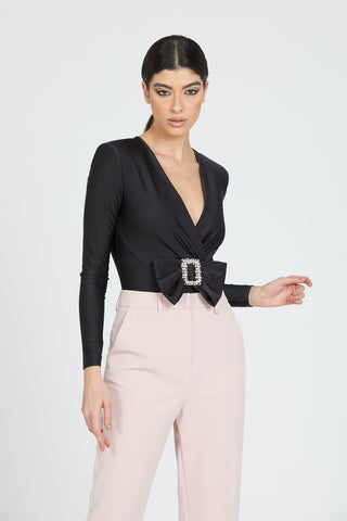 Blusa MUZTAGA manica lunga body incrocio più fiocco fibbia strass