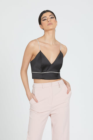 Top MARNISTONG corto con bretelle strass più inserti strass sotto