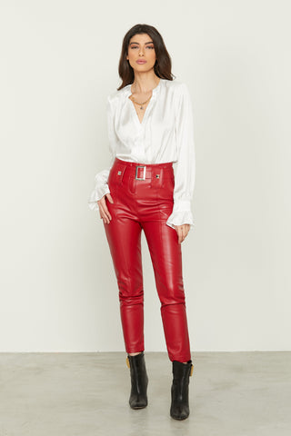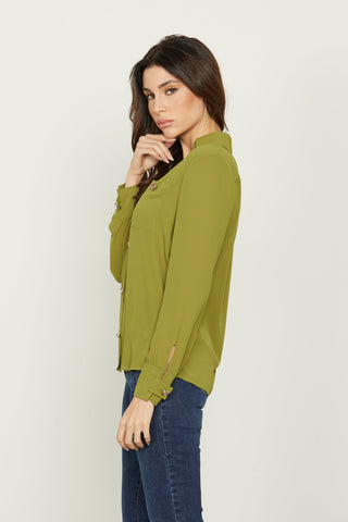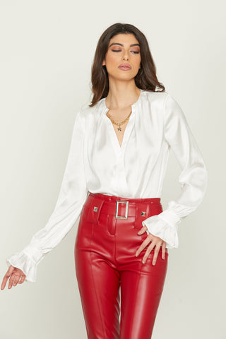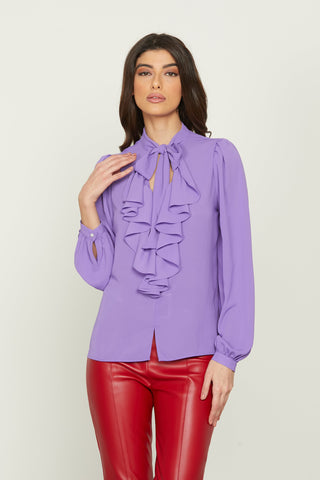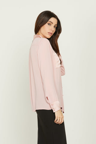 Camicia TORMENTA manica lunga palloncino scollo v con rouches più fusciacca