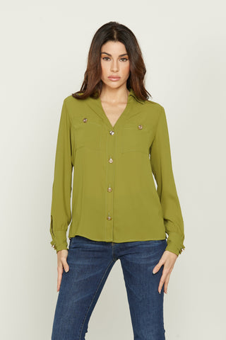 Camicia DENES manica lunga con martingala più tasche più bottoni gold