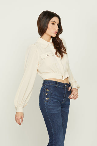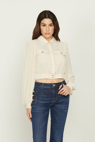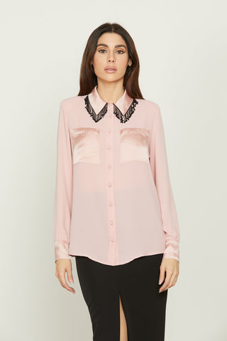 Camicia GRAZIA manica lunga con inserti raso più tasche più applicazione perline