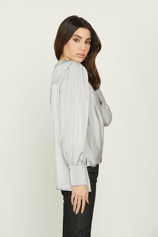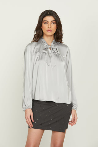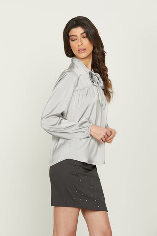 Blusa ASELLUN manica lunga scollo incrocio asimmetrica raso