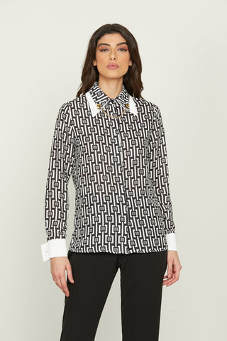 Camicia LABAKI manica lunga con arricci più fusciacca fant. Geometrica più lurex