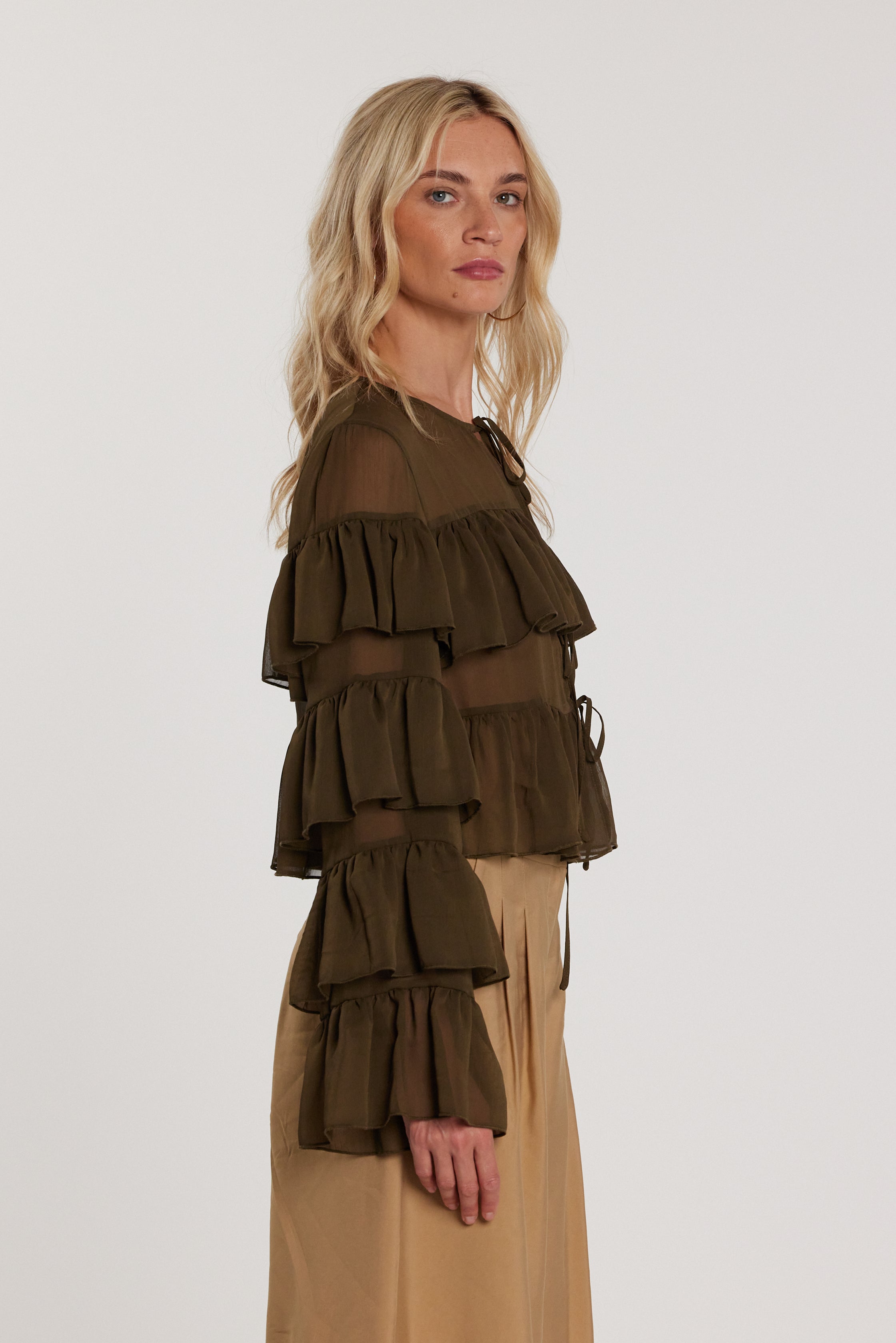 Blusa VYCTORIA maniche lunghe con balze più laccetti