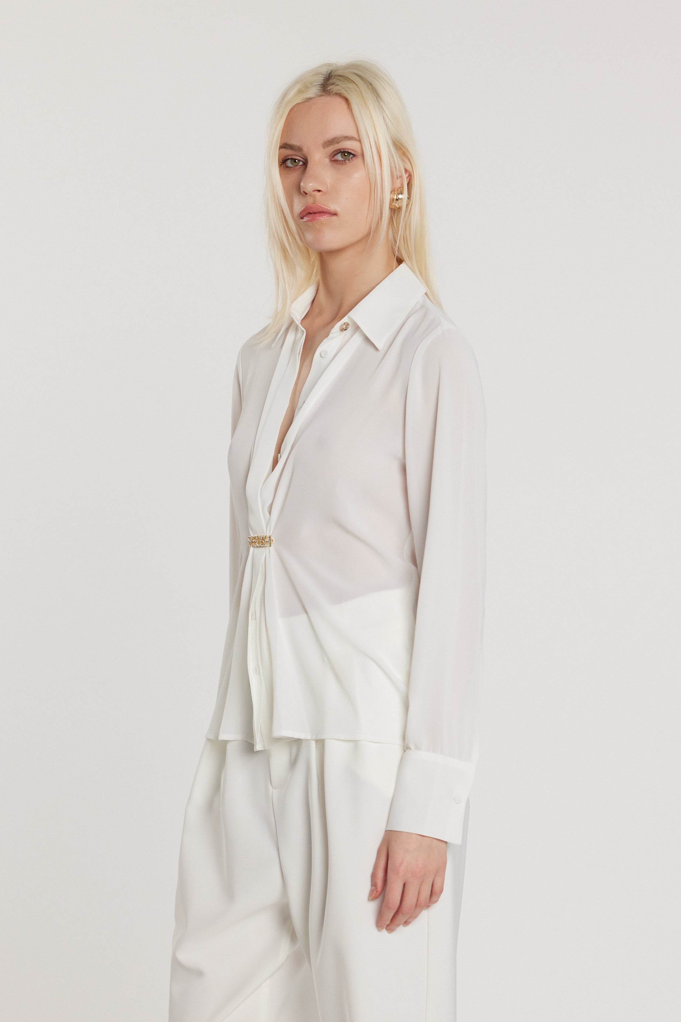 Camicia LAZA maniche lunghe con pieghe fintone più spilla logo strass