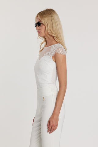 Camicia TRADY maniche tre quarti kimono con risvolto più applicazioni gioiello più pieghe sul fondo