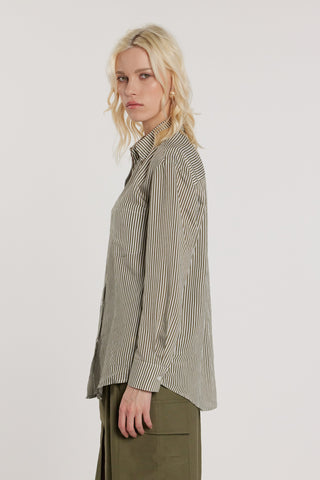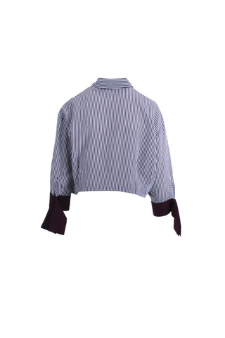 Camicia MAJADAR_CLOSED corta maniche tre quarti con polso volant più doppio colletto righe