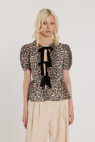 Blusa JONES maniche lunghe palloncino con applicazioni gioiello più fiocchi fantasia animalier