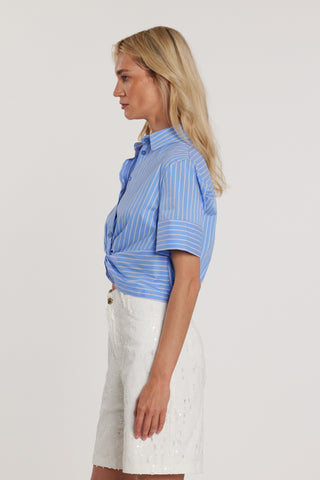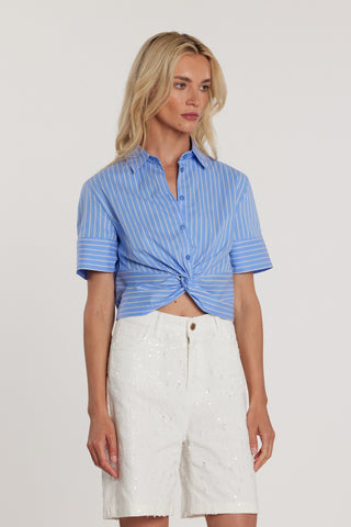 Blusa BUTTERFLY corta maniche corte con elastico più nodo sul fondo righe