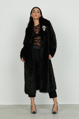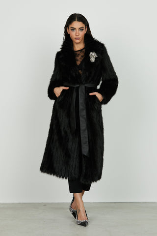 Ecopelliccia GHENTY manica lunga lunga più cintura più spille ecopelle