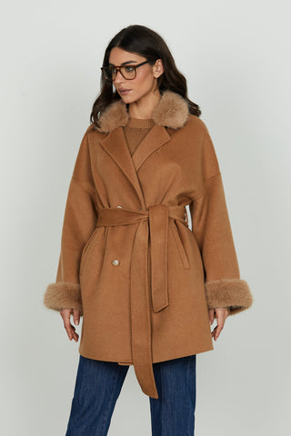 Cappotto SAN_PAOLO corto manica lunga doppio petto con bordi pelliccia più tasche più cint.