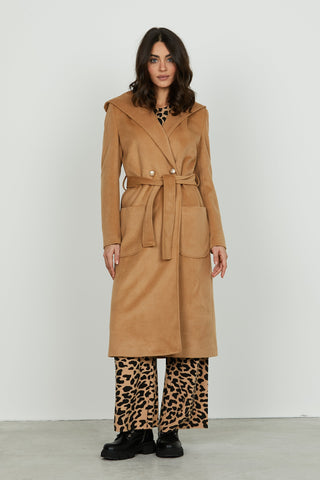 Cappotto ARPER lungo manica lunga con collo sciallato più cappuccio più ts toppa più cintura