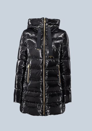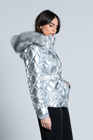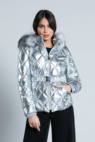Piumino YLET manica lunga con zip tras.v più cappuccio effetto metallizzato