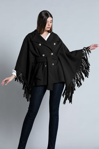 Cappotto MIUNA corto maniche a 3/4 kimono con frange d.petto più bott. più cappuccio più cint.