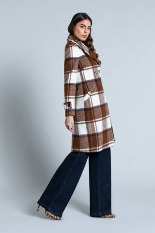 Cappotto RETIF lungo manica lunga con martingala doppio petto più tasche quadri