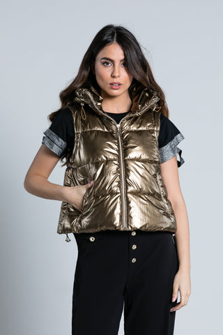 Piumino ZISAR corto smanicato con cappuccio più coulisse più zip
