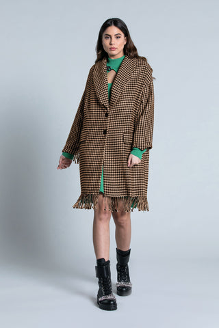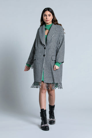 Cappotto BATEX lungo manica lunga over con tasche più patte più frange pie de poule