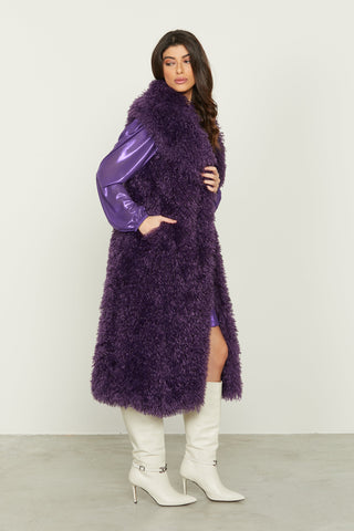 Pelliccia YET eco lunga senza maniche collo ampio 1 bottone