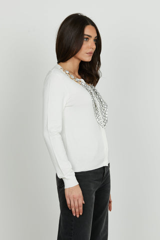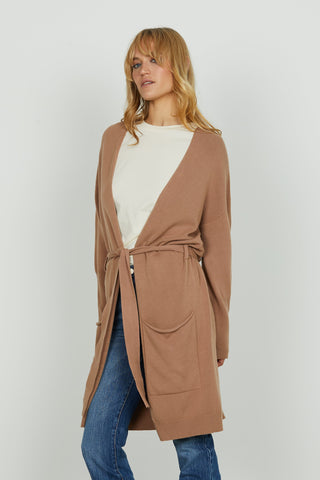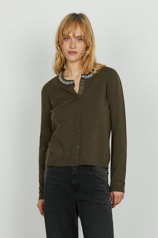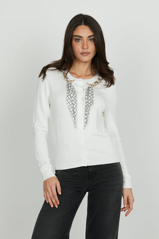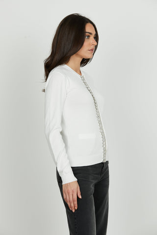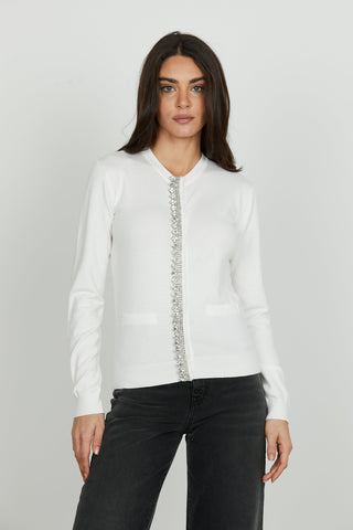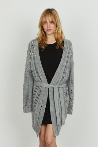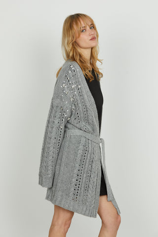Cardigan ANDRO manica lunga con cintura più lavorazione trecce più applicazione pietre